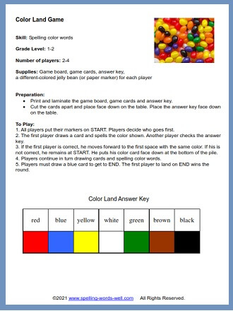 Here's one of the best elementary spelling games for practicing color words. As your kids are racing to the finish, all along the way they'll be spelling those all-important color words. The rules are simple, and we supply the all the free printables your kids need to start playing.